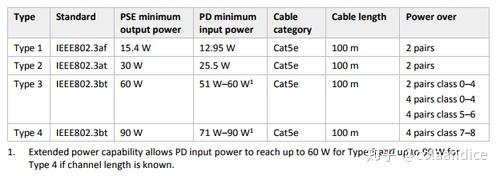 POE供电有802.3af(PoE)、802.3at(PoE+)、802.3bt(PoE++)三种标准。